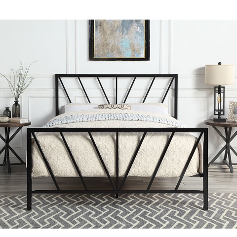 Cadre de lit moderne en fer noir Lit en métal facile à assembler