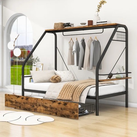Lit de rangement simple en tissu velours de haute qualité Meubles rembourrés pour enfants lits pouf